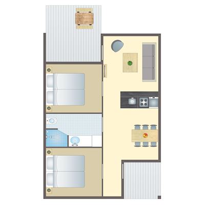 Comfortabel vakantiehuis met een gedeeltelijk overdekt privéterras om met het gehele gezelschap te genieten van de vakantie. Het vakantiehuis heeft ook een ruime woonkeuken met stijlvol meubilair. Er zijn twee slaapkamers met elk twee bedden en een gezellige vide met ruimte voor twee kinderen. De vakantiehuizen zijn privébezit, daarom zijn beschrijvingen, foto's, specificaties en plattegronden van de vakantiehuizen indicatief en kunnen ze afwijken.