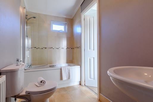 - Badkamer met douche, wastafel en toilet